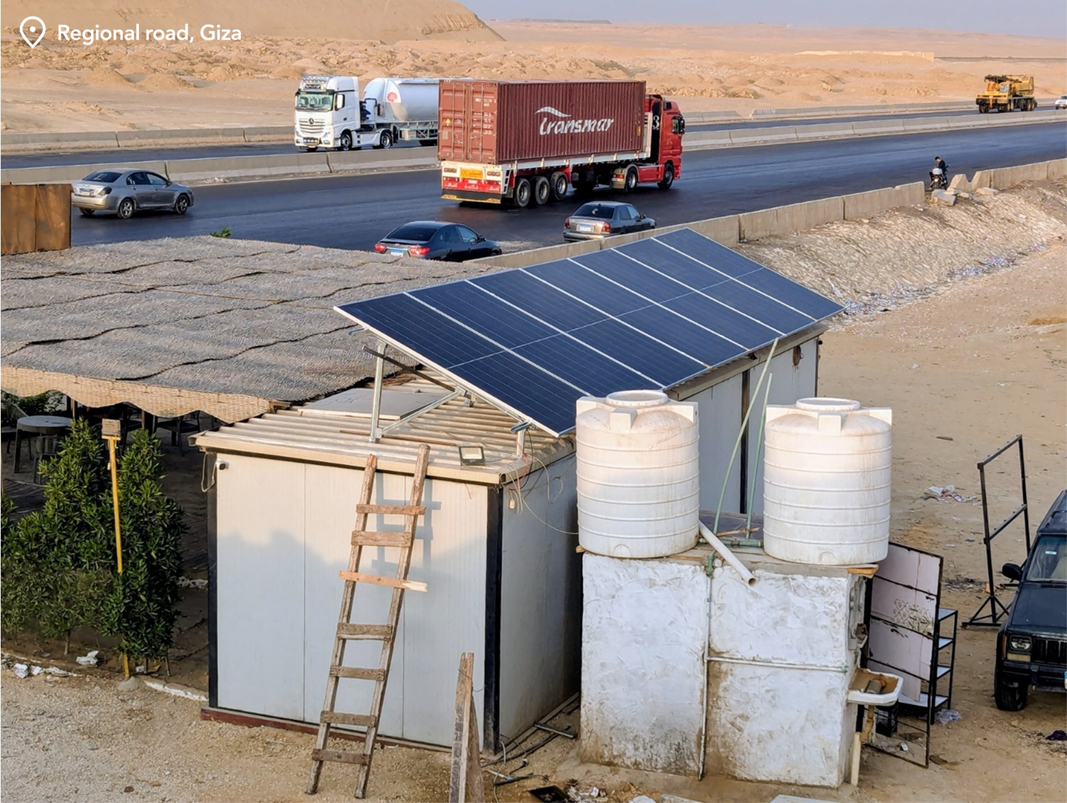 A hybrid solar system (Solar panels & Diesel generator) at Regional Road, Giza